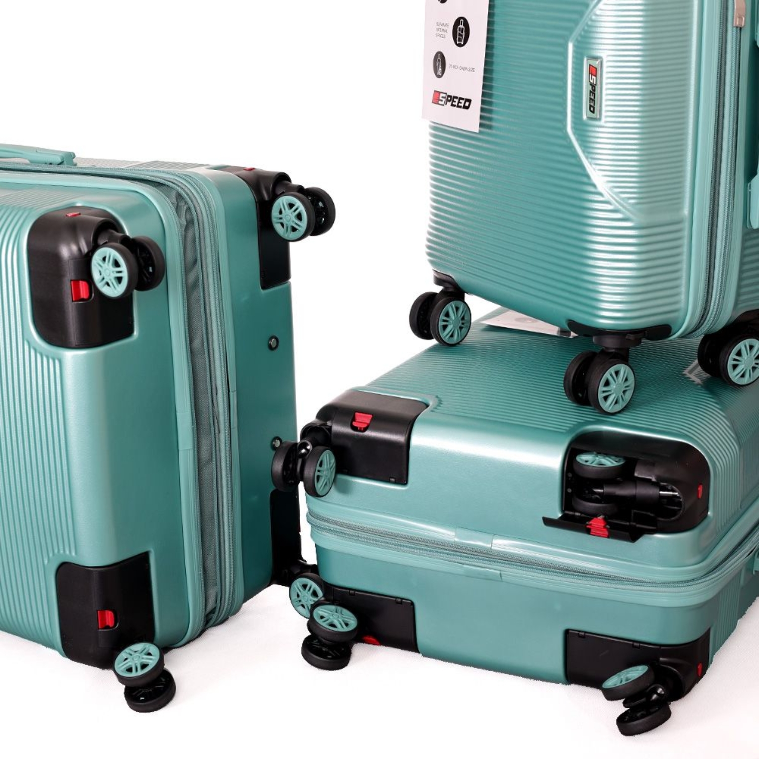لازمه رفتن به یک سفر خوب و راحت داشتن یک مجموعه چمدان با کیفیت و نشکن هست که چمدان های برند اسپید این نیاز رو برای هر فرد با خانواده ای برطرف کرده . چمدان اسپید مدل(Speed Retractable wheel TR950) یک مدله خیلی خاص، کمیاب و شیک هست حتما میدانید که مهم ترین دغدغه برای خریداران چمدان نشکن بودنه بدنه و به ویژه چرخ ها و دسته آن است که با این چمدان دیگر جایه نگرانی نیست زیرا بدنه مقاوم و نشکن از جنس پبی کربنات (PC)دارد که در برابر ضربه و شوک بسیار مقاوم هست و نمیشکند اما ویژگی ای که این چمدان را از چمدان های دیگر بازار متمایز میکند چرخ های نشکن و جمع شو آن است که با جمع شدن و مخفی شدن خیال شما را از بابت امنیت چرخ در ضربه های فرودگاهی یا هرگونه ضربه راحت میکند و همچنین دیگر مزیت این چرخ هایه مخفی شونده این است که با مخفی کردن و جمع کردن چرخ ها چمدان فضای خیلی کمتری را میگیرد.همچنین قفل سه رمز TSA بین المللی اورجینال و زیپ دوبل ضد سرقت این چمدان امنیت وسایل شما را کاملا تضمین میکند. زیپ افزایش حجم این کار نیز حجم داخلی چمدان شما را بیست درصد افزایش میدهد و شما میتوانید وسایل بیشتری داخل چمدان جا بدهید. دسته ی آلمینیومی سبک، نشکن و بسیار مقاوم این چمدان با قابلیت تنظیم ارتفاع حرکت آسانی را برای شما فراهم میکند.دسته ی حمل افقی چمدان نیز به شما درجابجایی چمدان کمک میکند.با چرخ های دوبل ۳۶۰ درجه نشکن و سایلنت این چمدان هم حرکتی روان و بیصدا را تجربه کنید.