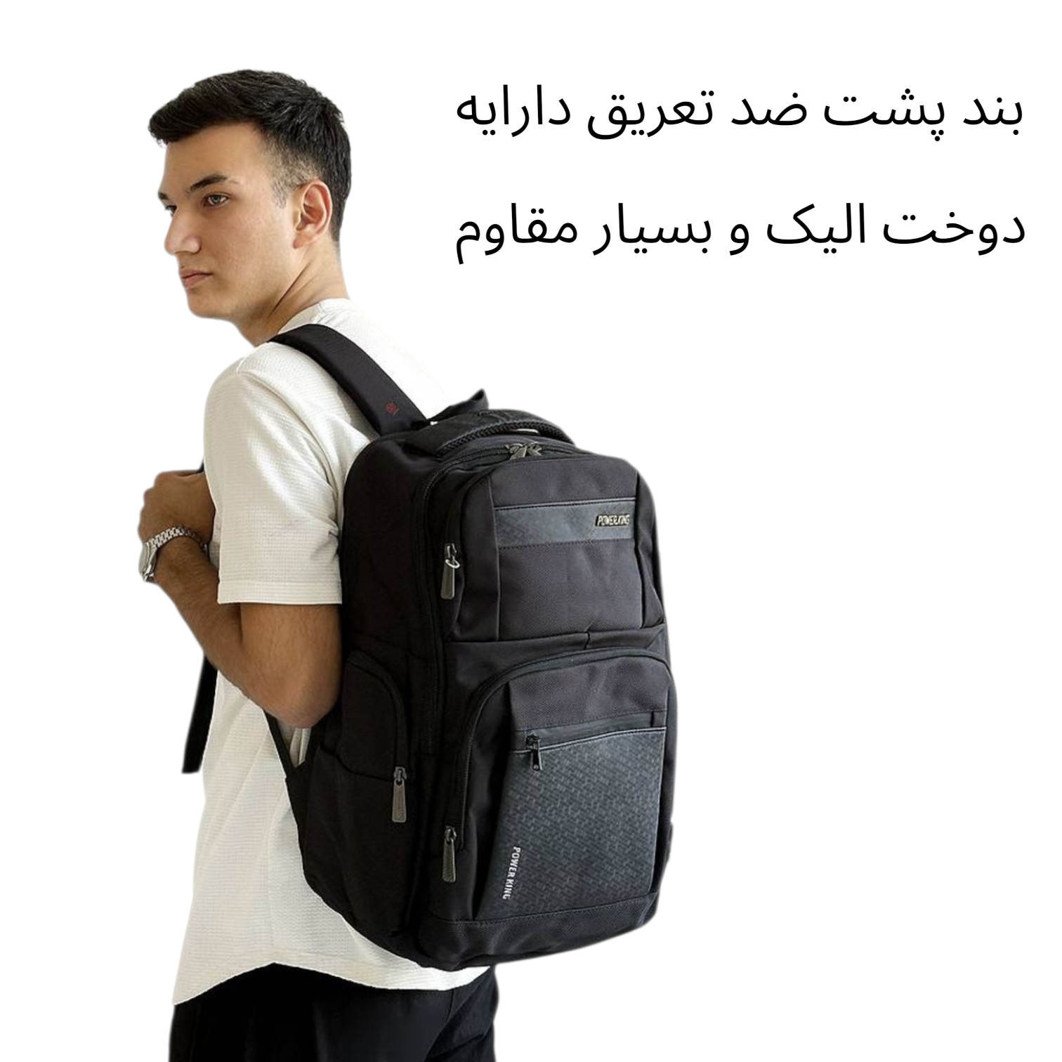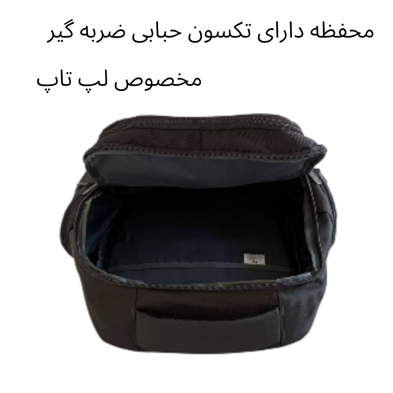 دارای دو خانه اصلی _ دارای سه جیب جلوی کار _ دارای محفظه مخصوص لپ تاپ که با تکسون حبابی ضربه گیر تعبیه شده _ دارای دو جیب زیپی در کناره کار