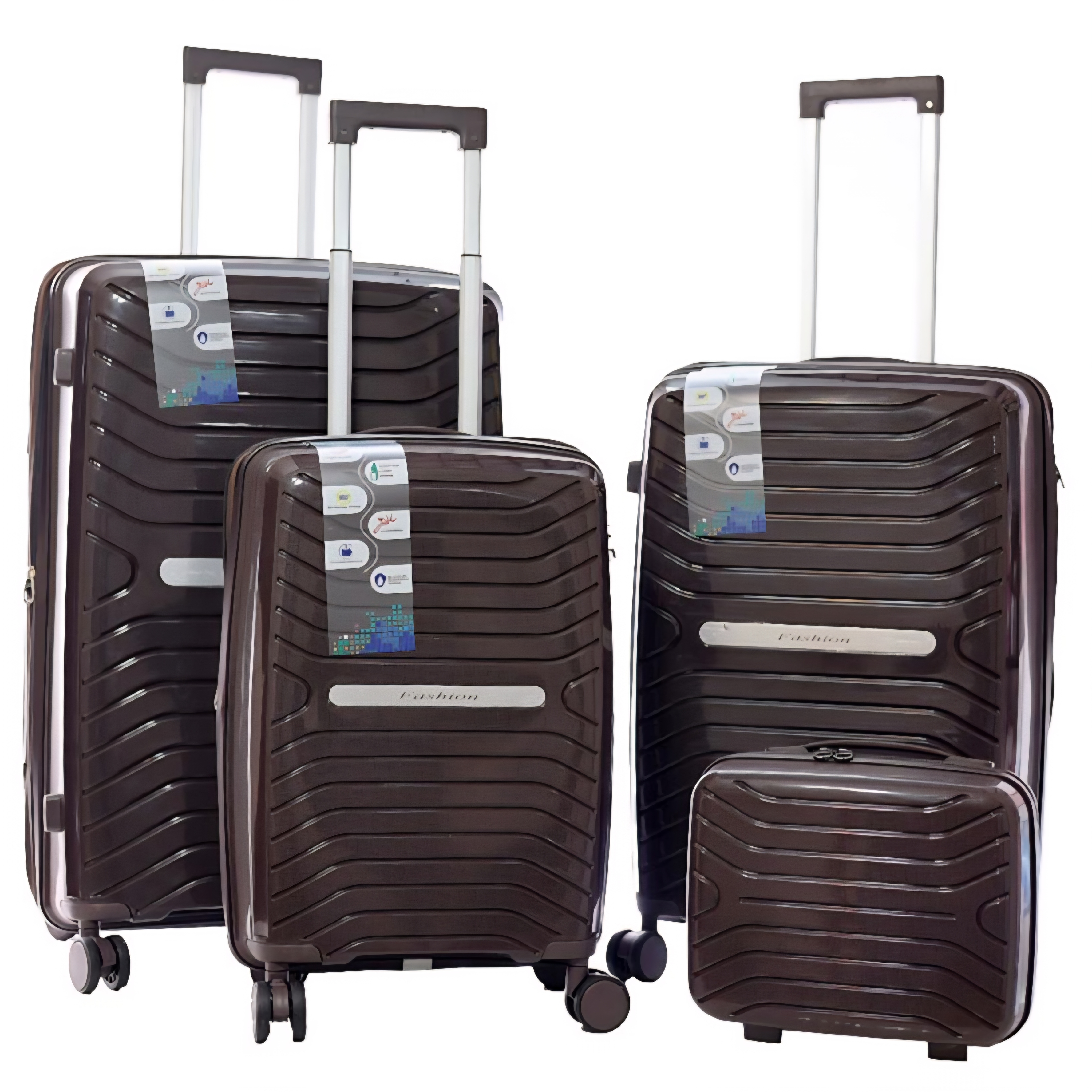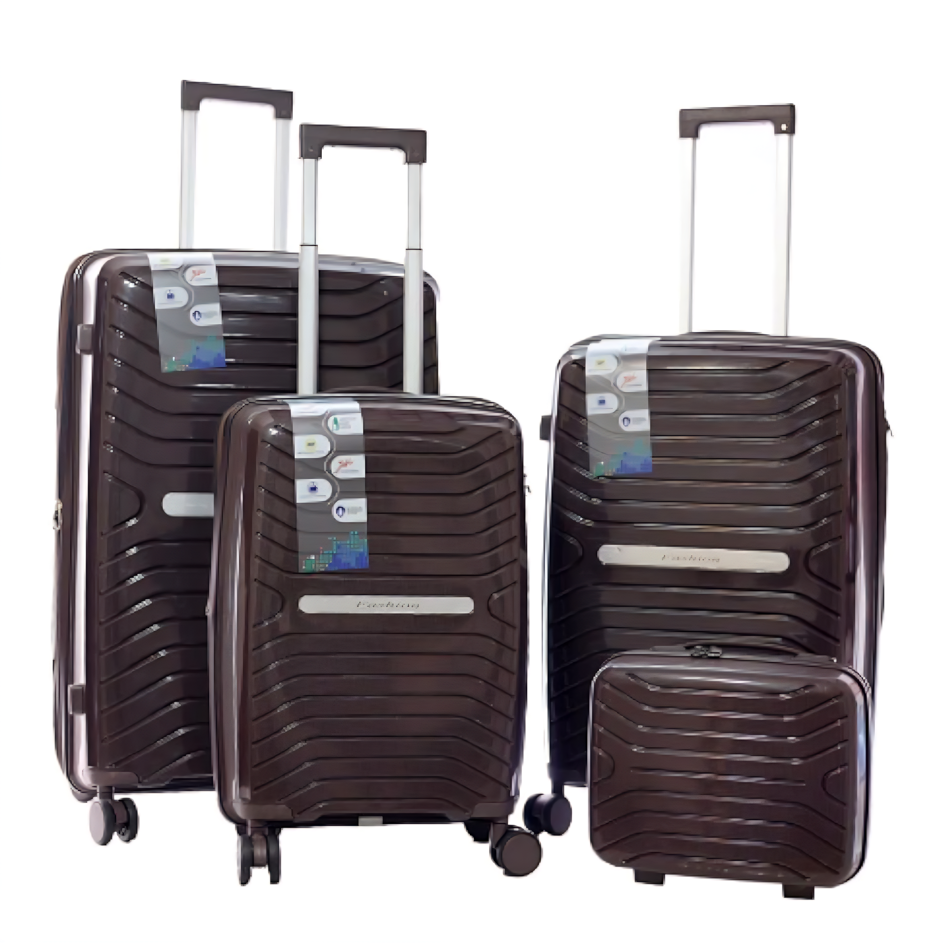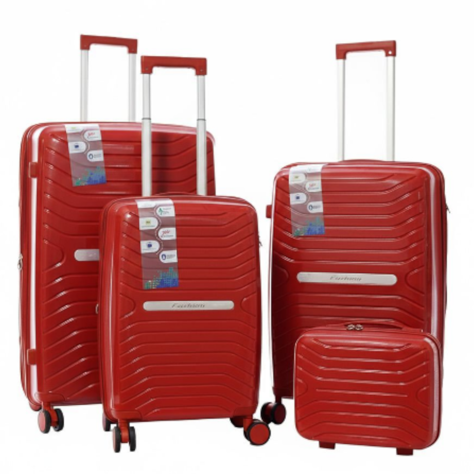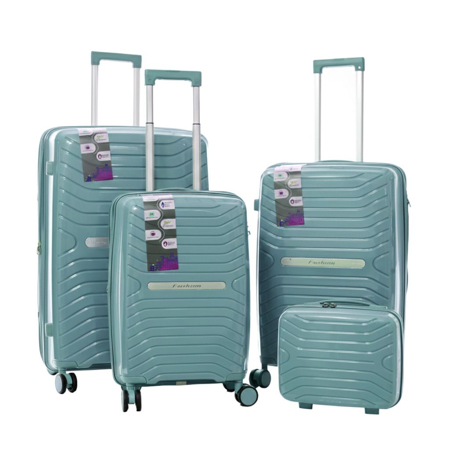 ست چهار عددی چمدان فشیون (Fashion FS Travel 950) یک چمدان زیبا مقاوم و فول آپشن است. این چمدان از جنس پلیپروپیلن انعطاف پذیر و نشکن ساخته شده که در برابر هرگونه ضربه مقاوم است. همچنین در برابر خط و خش نیز مقاومت دارد. این چمدان دارای زیپ افزایش دهنده حجم هست که حجم چمدان شما را تا ۲۰ درصد افزایش میدهد و خیال شما را از بابت جا دادن وسایل راحت میکند. قفل TSA 007 و زیپ های دوبل ضد سرقت این چمدان امنیت وسایل شما را تضمین میکند. دسته تلسکوپی آلومینیومی چند استوپی مقاوم با قابلیت تنظیم ارتفاع حرکته آسانی را برای شما فراهم میکند همچنین چرخ های دوبل ۳۶۰ درجه نشکن، روان و سایلنت این چمدان حرکاتی روان و بیصدا را برای شما فراهم میکند