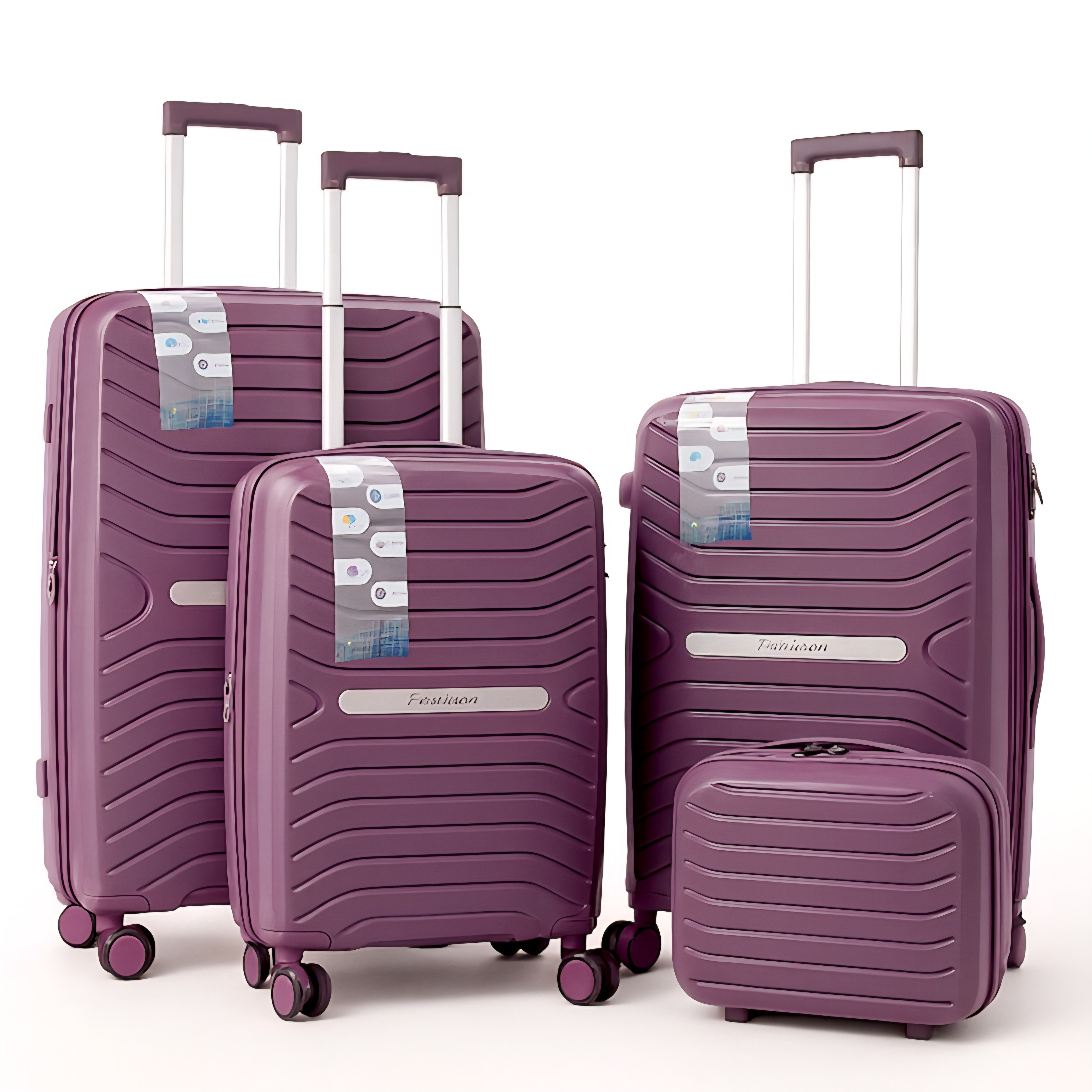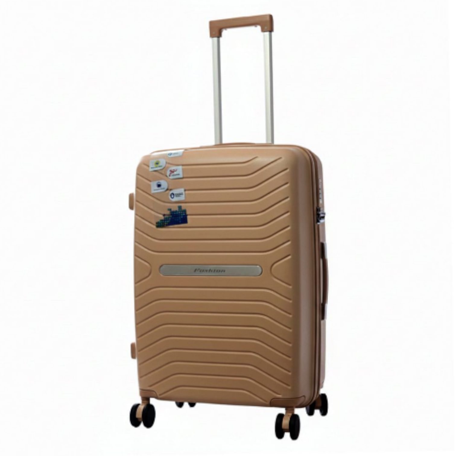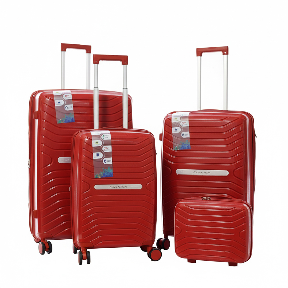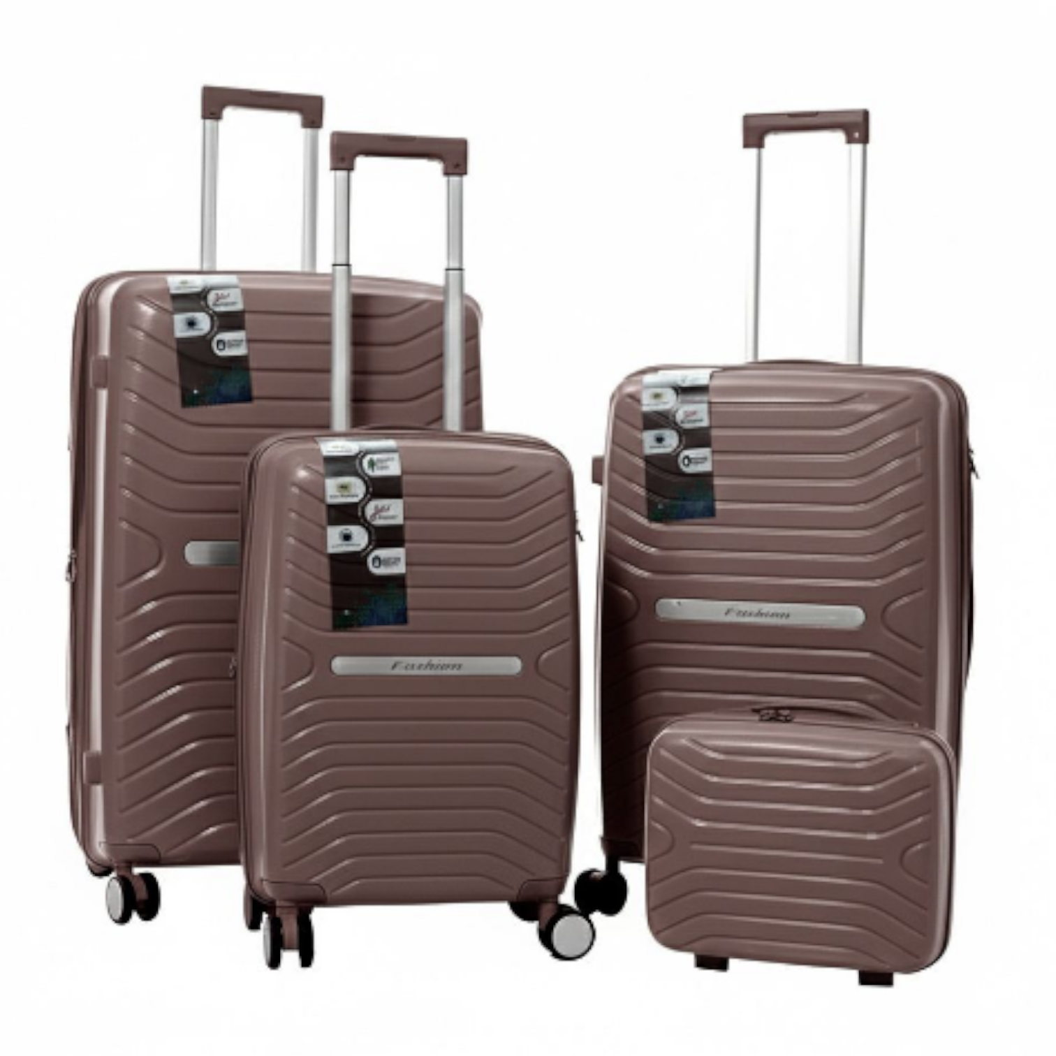 ست چهار عددی چمدان فشیون (Fashion FS Travel 950) یک چمدان زیبا مقاوم و فول آپشن است. این چمدان از جنس پلیپروپیلن انعطاف پذیر و نشکن ساخته شده که در برابر هرگونه ضربه مقاوم است. همچنین در برابر خط و خش نیز مقاومت دارد. این چمدان دارای زیپ افزایش دهنده حجم هست که حجم چمدان شما را تا ۲۰ درصد افزایش میدهد و خیال شما را از بابت جا دادن وسایل راحت میکند. قفل TSA 007 و زیپ های دوبل ضد سرقت این چمدان امنیت وسایل شما را تضمین میکند. دسته تلسکوپی آلومینیومی چند استوپی مقاوم با قابلیت تنظیم ارتفاع حرکته آسانی را برای شما فراهم میکند همچنین چرخ های دوبل ۳۶۰ درجه نشکن، روان و سایلنت این چمدان حرکاتی روان و بیصدا را برای شما فراهم میکند