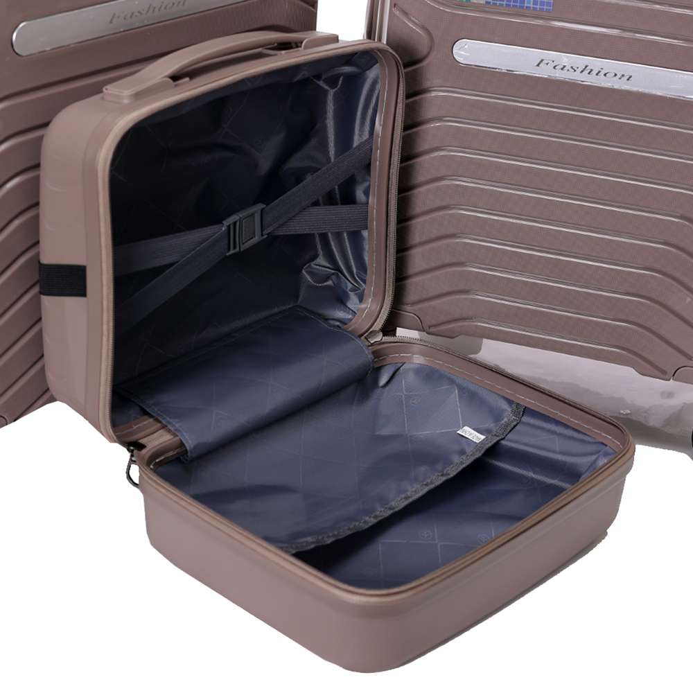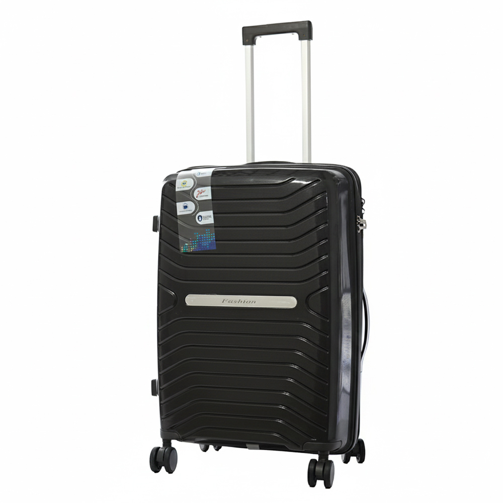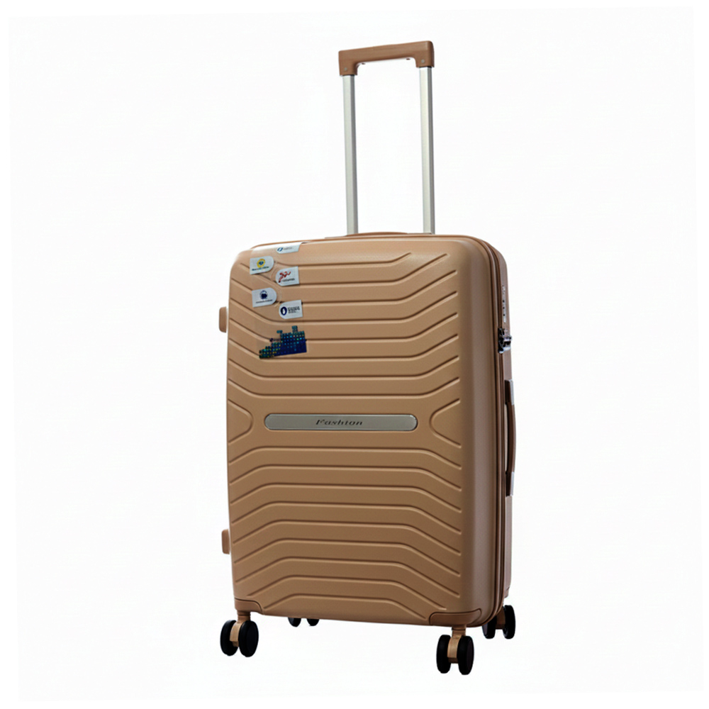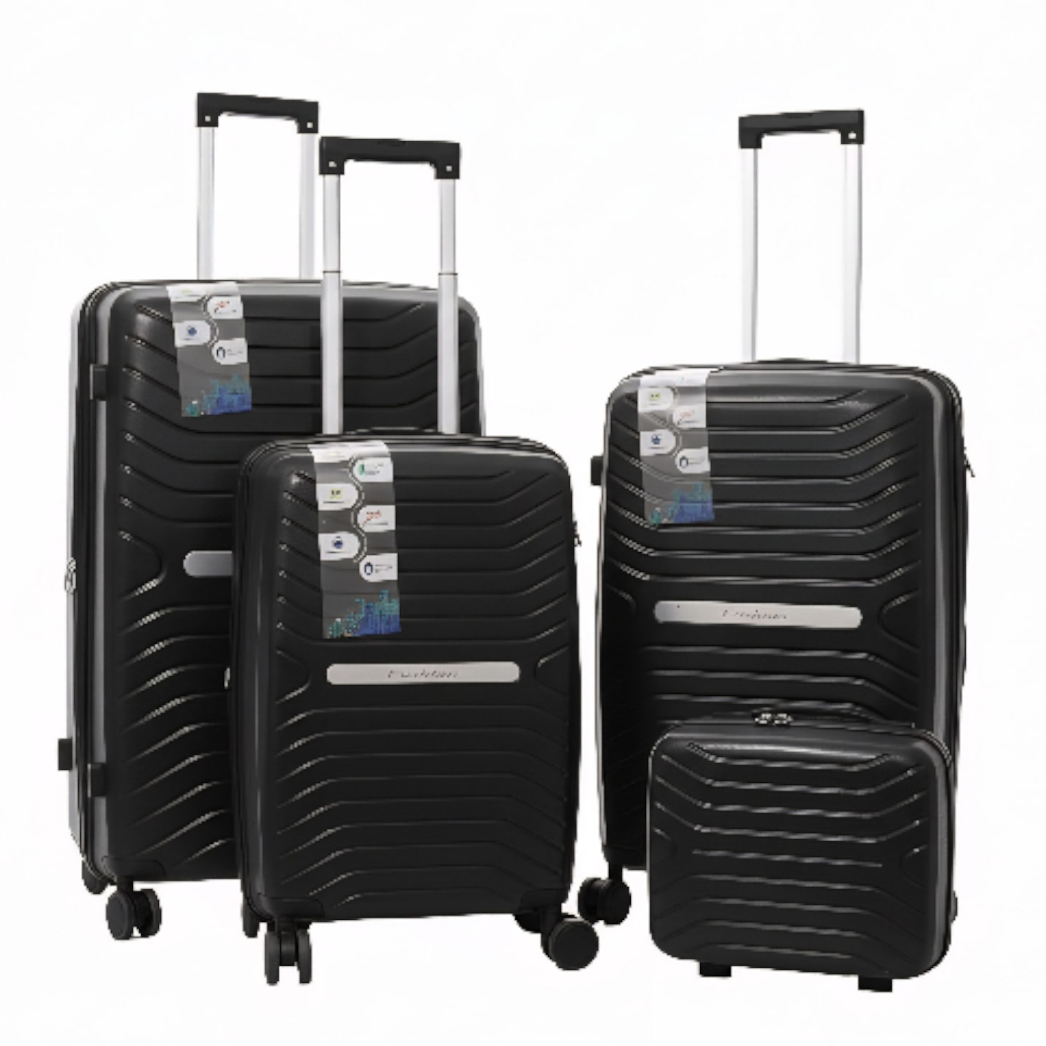 ست چهار عددی چمدان فشیون (Fashion FS Travel 950) یک چمدان زیبا مقاوم و فول آپشن است. این چمدان از جنس پلیپروپیلن انعطاف پذیر و نشکن ساخته شده که در برابر هرگونه ضربه مقاوم است. همچنین در برابر خط و خش نیز مقاومت دارد. این چمدان دارای زیپ افزایش دهنده حجم هست که حجم چمدان شما را تا ۲۰ درصد افزایش میدهد و خیال شما را از بابت جا دادن وسایل راحت میکند. قفل TSA 007 و زیپ های دوبل ضد سرقت این چمدان امنیت وسایل شما را تضمین میکند. دسته تلسکوپی آلومینیومی چند استوپی مقاوم با قابلیت تنظیم ارتفاع حرکته آسانی را برای شما فراهم میکند همچنین چرخ های دوبل ۳۶۰ درجه نشکن، روان و سایلنت این چمدان حرکاتی روان و بیصدا را برای شما فراهم میکند