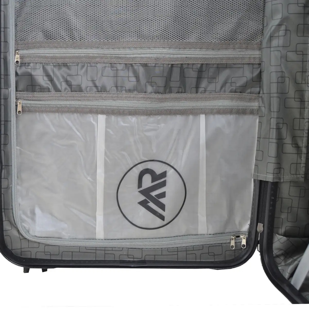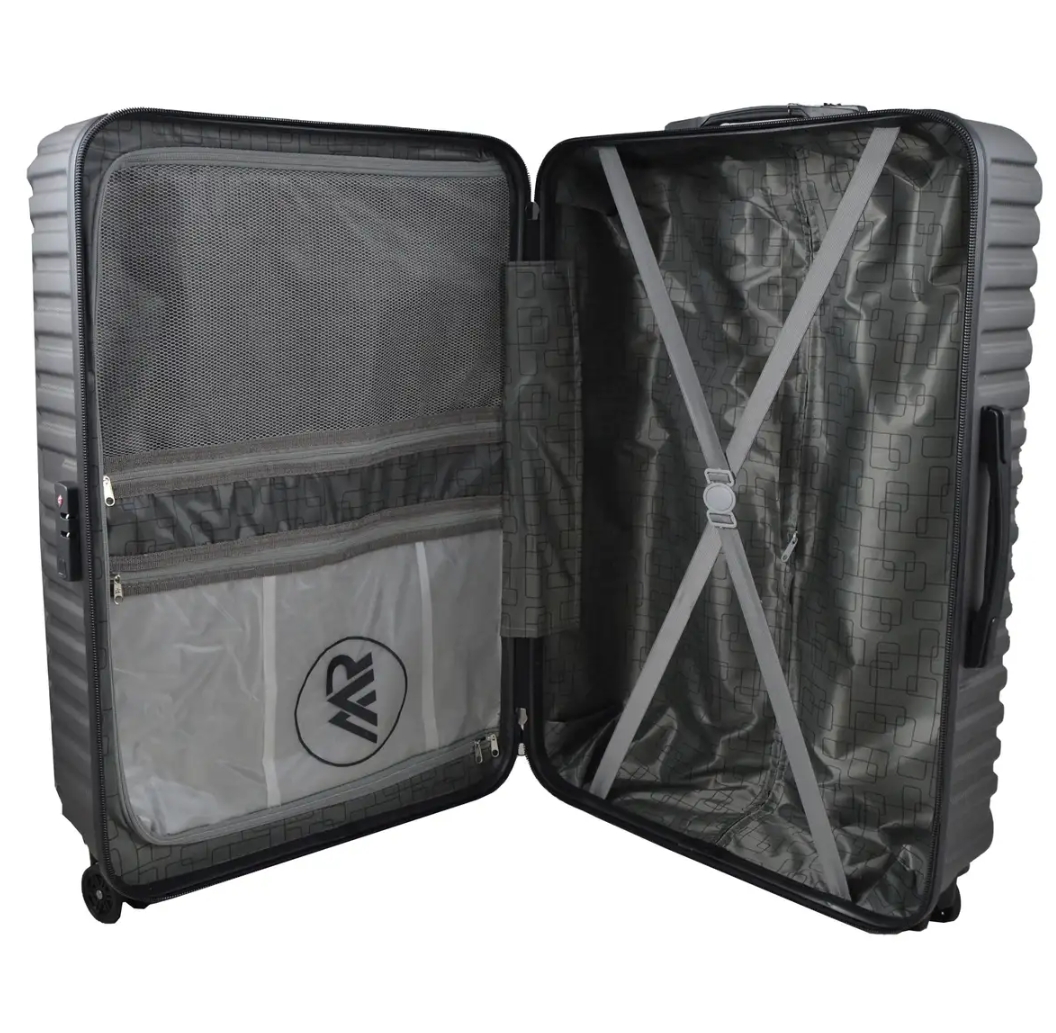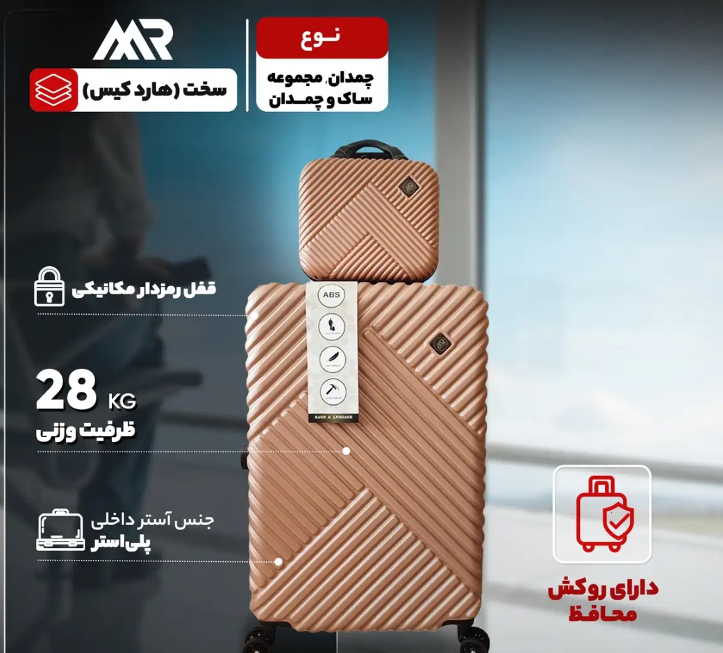 مجموعه چهار عددى چمدان ام آر مدل PK داراى سه جمدان با بدنه ى ABS مقاوم با يك ساك دستى است فضاى داخل اين مدا، داراء، یک جيب براى لباسهاى كثيف و خيس و زيپ تعويض وتعمير مجزاست همچنين طراحى جديد جهت قرار دادن بهتر البسه و وسايل براى اينمدل اجرا شده است و هر سايز چمدان يك كاور جداگانه دارد.