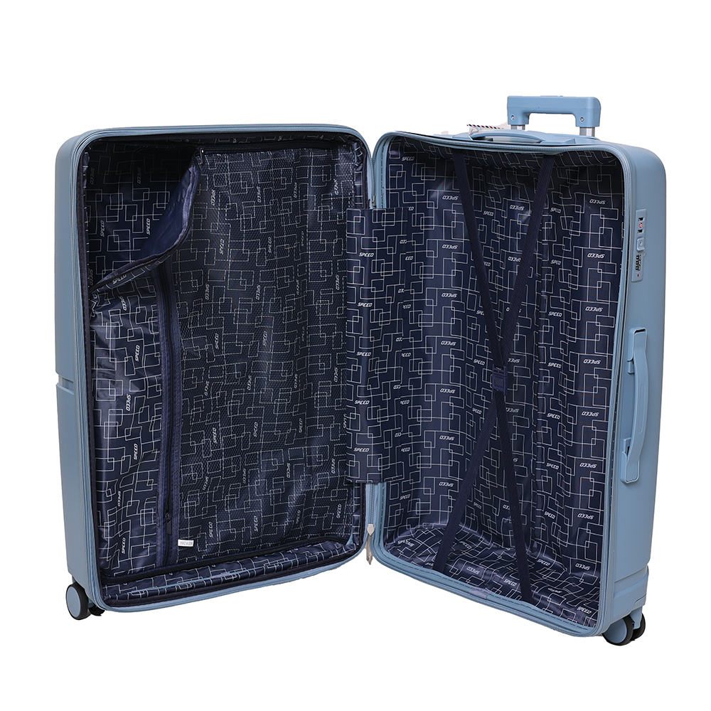 اگه دنبال یه ست چمدان هستید که در عین زیبا و شکیل بودن از جنس و متریال خیلی خوبی هم برخوردار باشه ما به شما ست سه عددی چمدان اسپید مدل Diagram SPD1 را پیشنهاد میکنید. که در عین طراحی چشم نواز و زیباش بسیار مقاوم و سبک هستش.این چمدان از جنس پلیپروپیلن دولایه ساخته شده که انعطاف پذیر و نشکن هست، و در برابر هرگونه ضربه و شوک مقاومت دارد پس خیالتون از مقاومت این ست در برابر ضرباته فرودگاهی و هرگونه ضربه دیگر راحت باشد.قفل سه رمز TSA 007 ضد سرقت این چمدان به همراه زیپ های دوبل دولاین ضد سرقت و سرزیپ استیل متالیک مقاوم و نشکن این چمدان امنیت وسایل شخصی شما را بطور کامل تضمین میکنند. چهار چرخ دوبل ۳۶۰ درجه روان و بیصدا (silent wheel) آنتی شوک این ست با مقاومت بسیار بالای خود حرکتی روان و بی دردهسر را برای شما فراهم میکنند.دسته تراولی چند استوپی آلومینیومی سبک و مقاوم و دسته افقی جهت حمل چمدان باعث راحتی بیشتر در حمل چمدان شما میشود. زیپ افزایش حجم این چمدان هم این ست به یک ست سه تیکه فول آپشن تبدیل میکنه که میتونه تا ۲۰ در صد فضا داخلی بیشتری به شما برا جا دادن وسایلتون بده پس خیالتون رو هم بابت جا دادن وسایلتون راحت میکند.در کل ست سه عددی چمدان اسپید مدل Diagram SPD1 یک ست فول هست که همیشه همراه خوب شما در سفر هست، که خیالتون از بابت مقاومت، امنیت و فضا داخلی راحت میکند.
